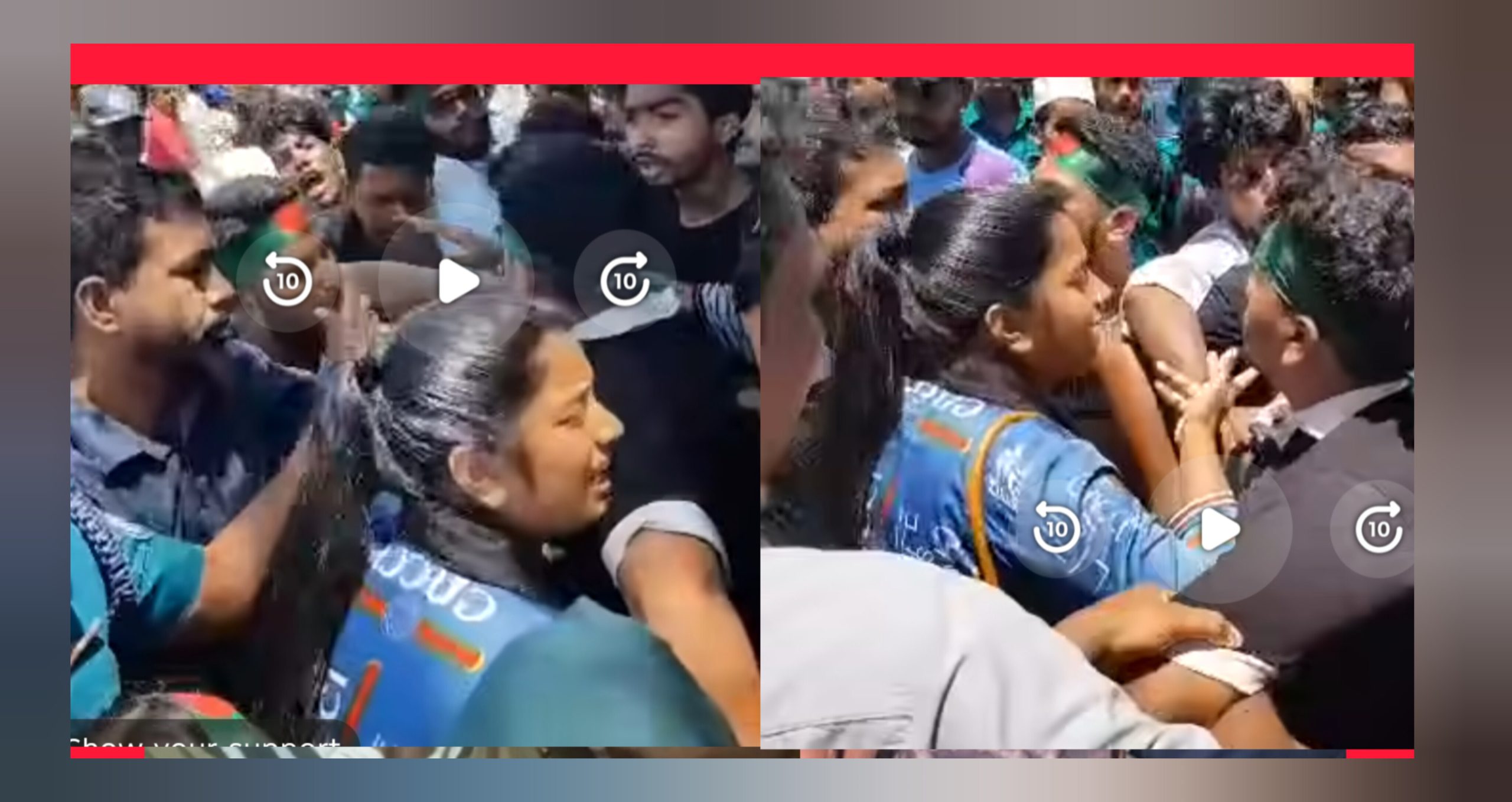 ভিডিওতে আরো দেখাযায়, এ সময় ২ নারী সহ কয়েকজন আন্দোলনকারী ঐ ছাত্রলীগ কর্মীকে ছাড়িয়ে নিতে অভিযানে থাকা পুলিশ সদস্যদের সাথে ধস্তাধস্তিতে জড়িয়ে পরেন। এক পর্যায় পুলিশ ওই অভিযুক্ত ওই ছাত্রলীগ কর্মীকে গাড়িতে উঠাতে সক্ষম হলেও ৫ থেকে ৬জন শিক্ষার্থী পুলিশের গাড়িতে স্বেচ্ছায় উঠে বসেন।